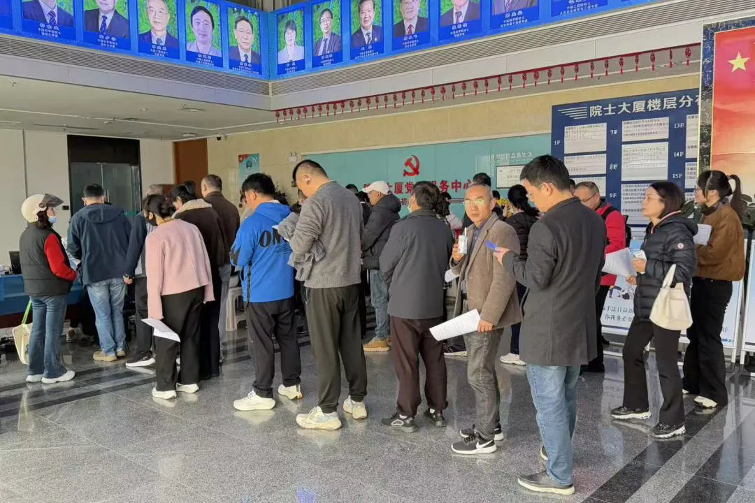 献血活动设在院士大厦广场,上午八时刚过,现场便排起了队伍。不少居民特意从家中赶来,也有许多辖区企业员工利用工作间隙参与,整个现场秩序井然,暖意涌动。