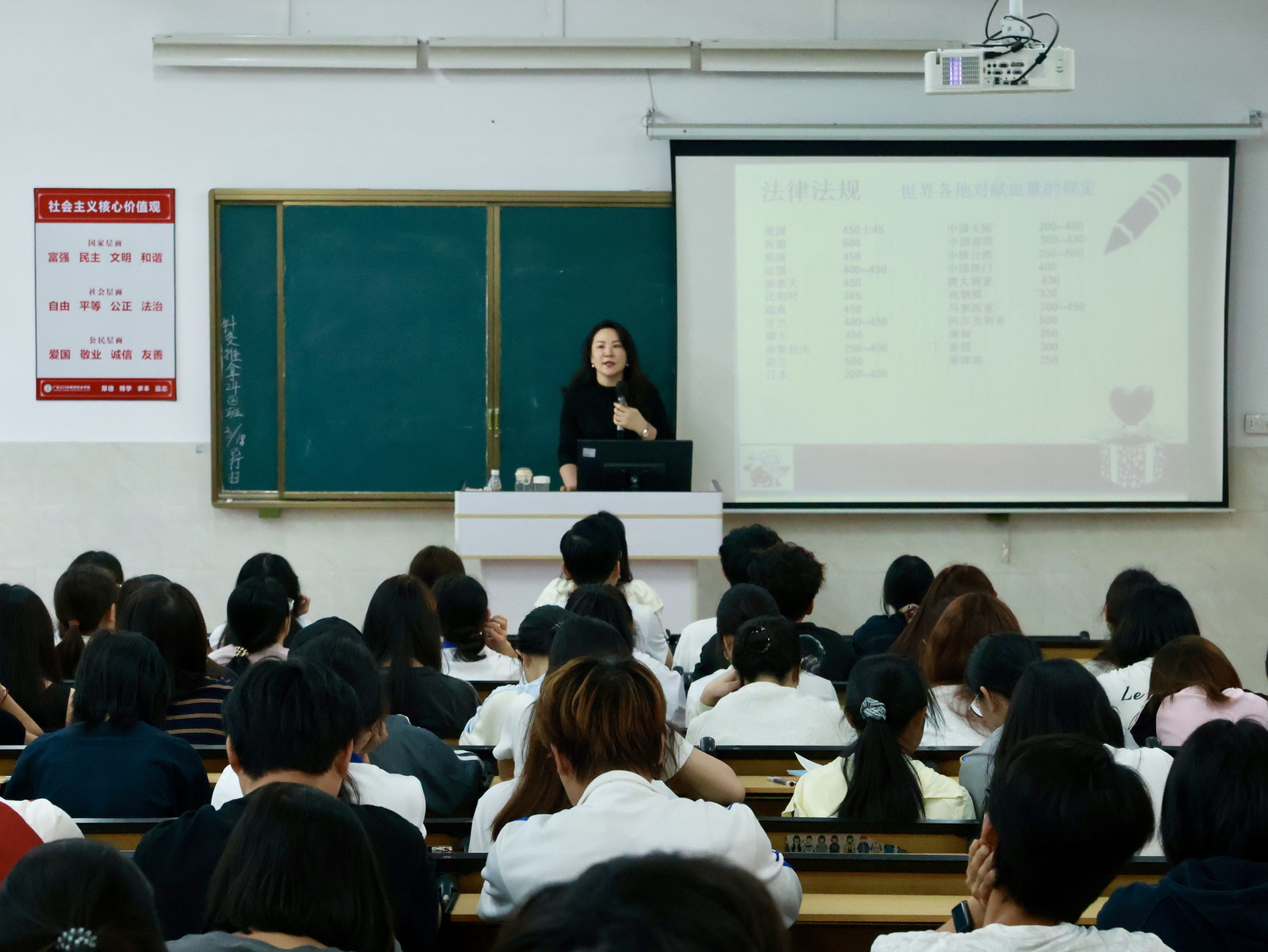 讲座以观看视频“一袋血的旅程”拉开帷幕,血站科普讲师围绕无偿献血意义、献血流程规范、世界各地献血量、献血者保障政策等内容展开细致讲解,用通俗易懂的语言、真实鲜活的临床案例,澄清常见认知误区,让同学们全面认识无偿献血的科学性、安全性与重要性。作为中医药学子,大家对生命健康与临床救治有着更深理解,认真聆听、主动记录,在专业科普中筑牢爱心理念。