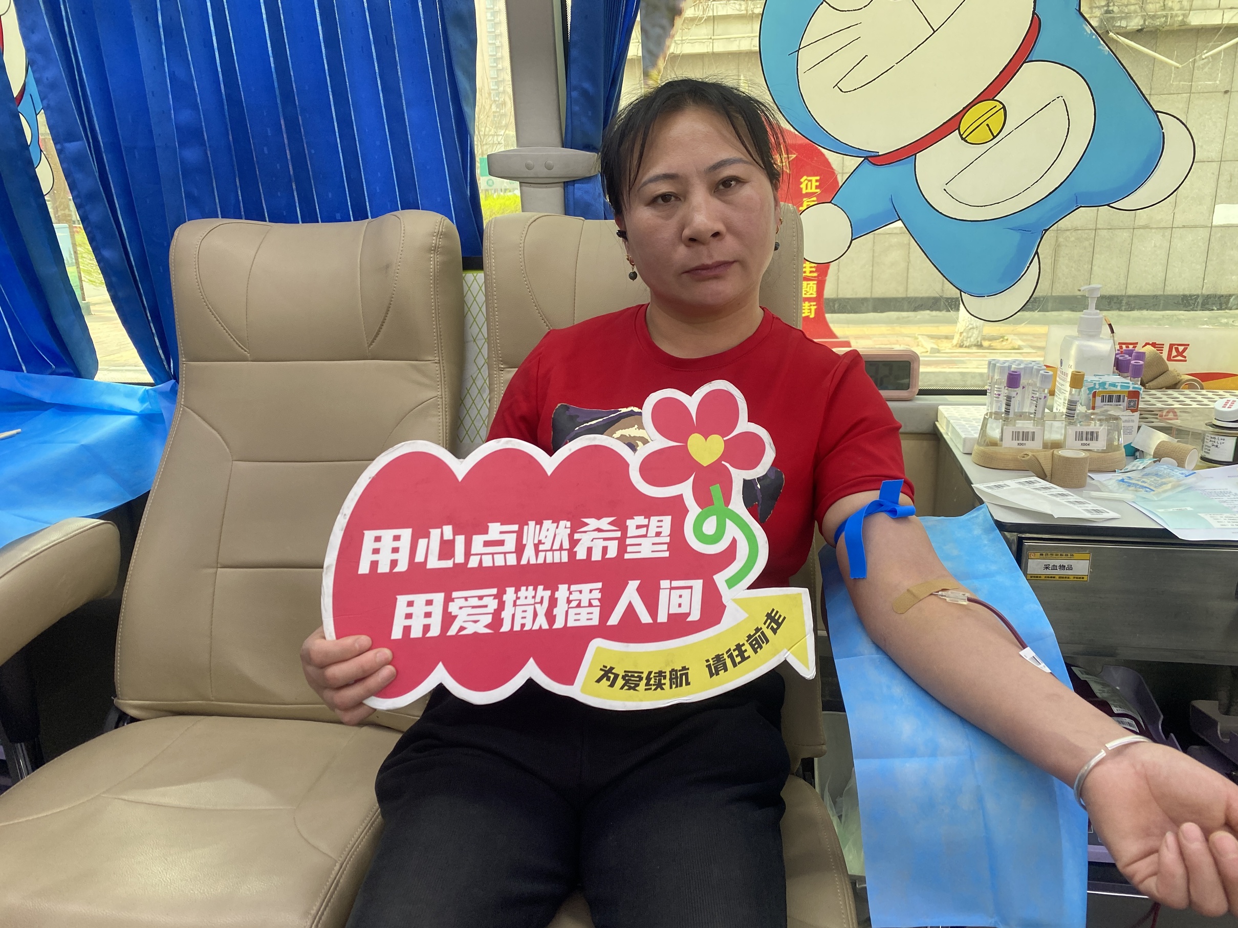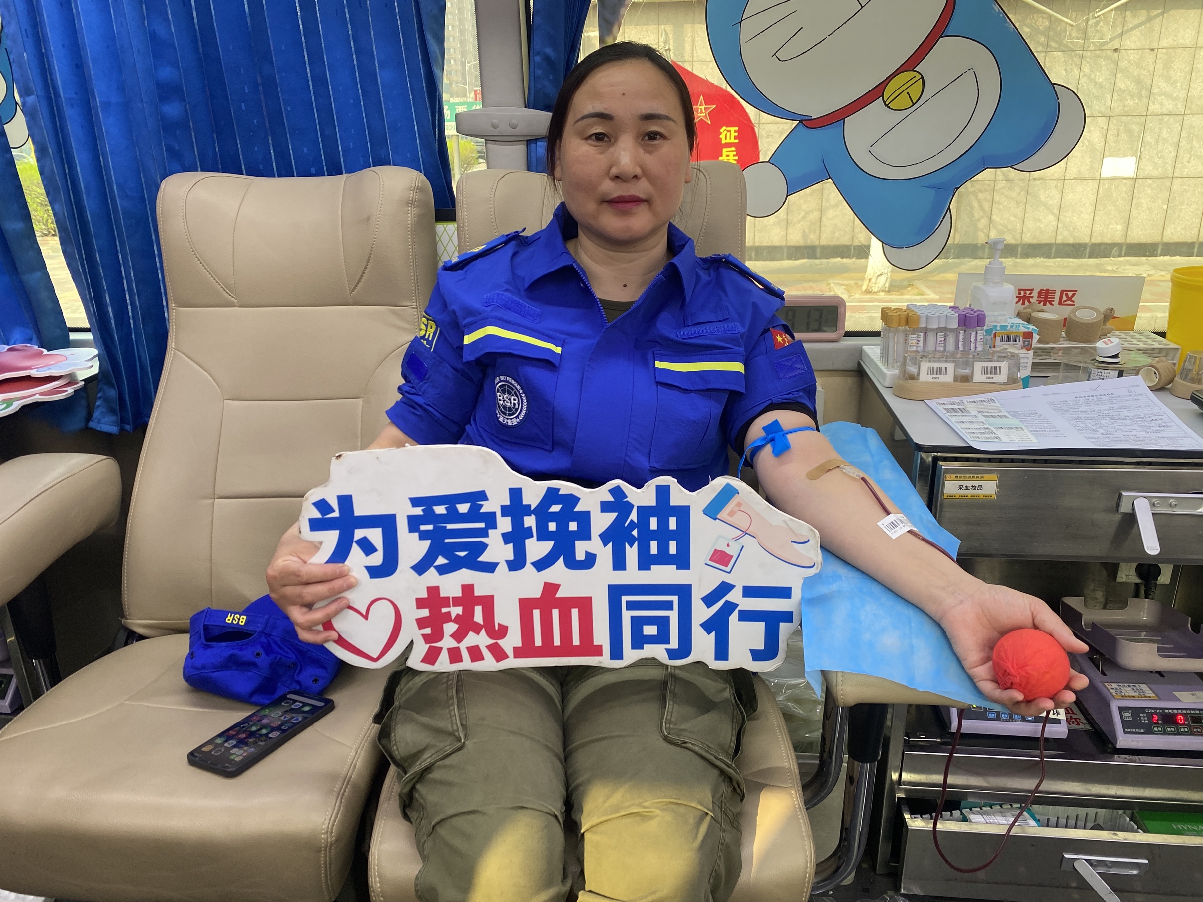 蓝天救援队李凤霞说:“平时我们身着队服,奔赴灾害现场用双手托起生命的希望。此刻,我们挽起衣袖,献出热血,用另一种方式守护生命。作为救援队员救人的初心从未改变,那一抹“救援蓝”,也可以是流淌在血管里的“热血红”。