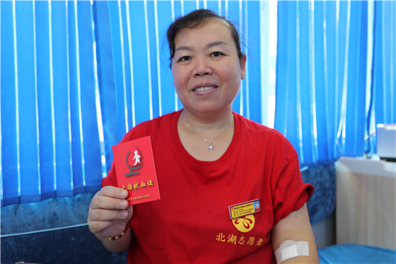 “现在退休在家没事,正好献血发挥一下余热,为社会做点贡献。”胡小春是第一次献血,她听说协会要组织献血活动立马就报了名。她表示,前年北湖区志愿者协会组织参加的血站开放日活动令她印象深刻,原来以为献血就像电视剧上那样直接输给病人,参观才知道血液需要经过那么多道工序才能使用。此后,胡小春对献血救人有了全新的认识,这次献血活动大家一起参加也不会觉得特别紧张。