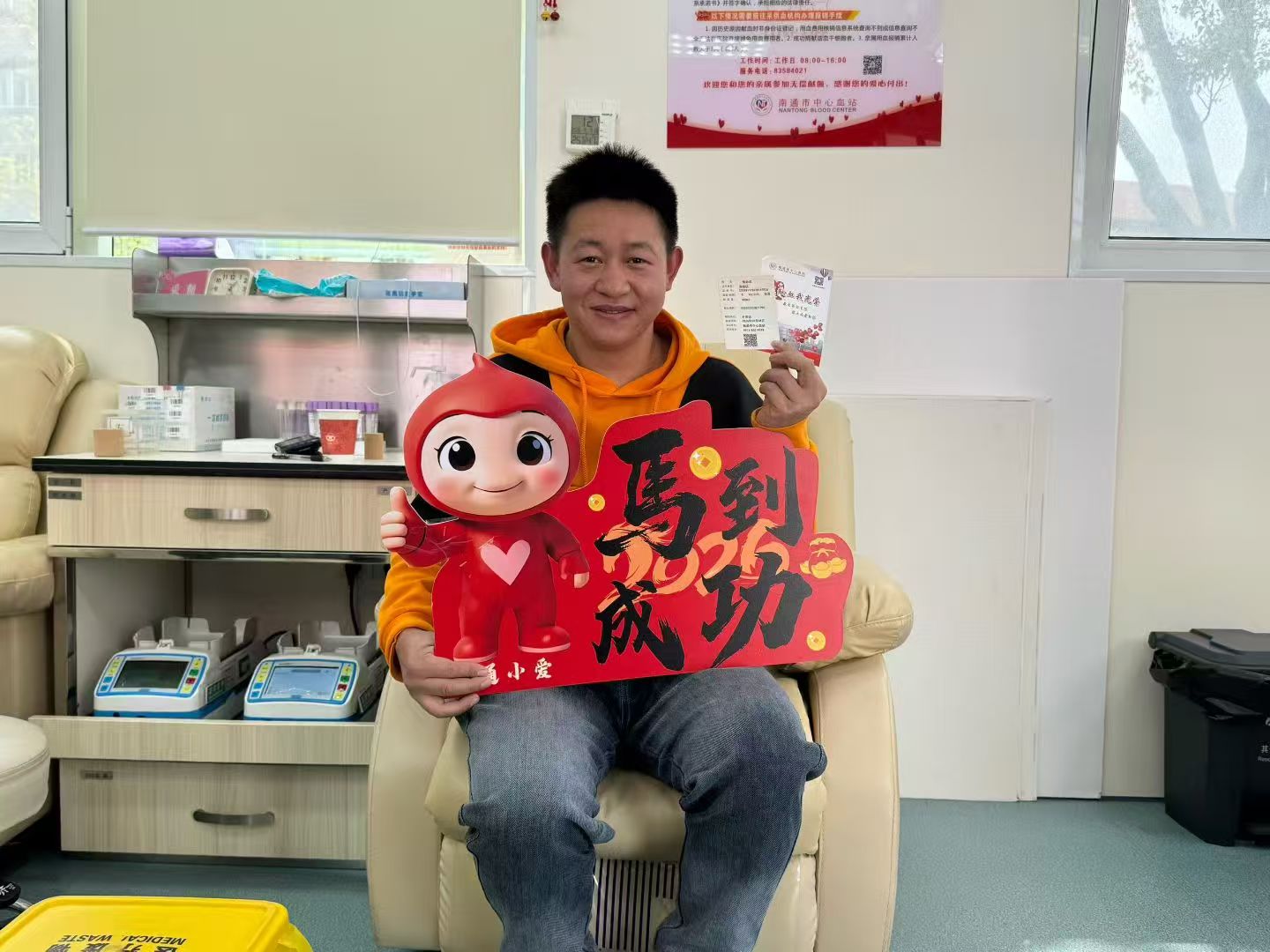 工作人员小石头登录进系统一查询,告诉我,张必克来通后陆续捐献了22次血液,累计献血已达8600ml。他听到我们的对话羞赧地笑了:“这没什么,一年献血两次已经成了习惯。其实在老家,我跑了好多路去捐献过两次。”问及献血的初衷,他淡淡地笑着说,我就想着献血可以救人命,献一次就能帮到一个人挺好的。还特别骄傲地告诉我,他打工的厂子里陆续有五个人被他带动了也时常去献血,甚至包括一样在南通打工的大哥、大姐和姐夫在内。