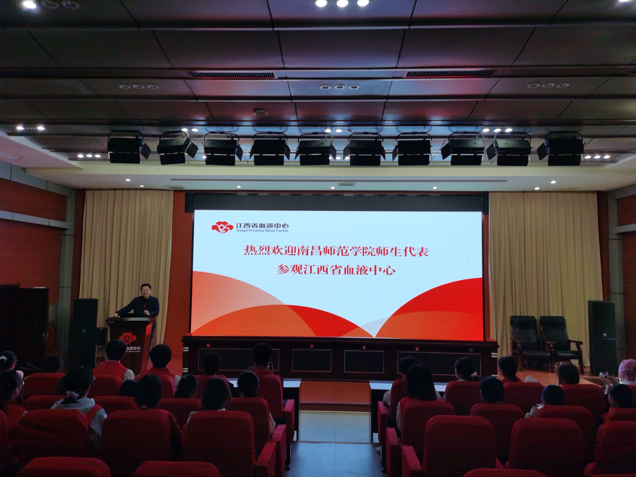 活动伊始,血液中心血源管理科科长方昌志,热情迎接师生一行,围绕血液生理知识、无偿献血政策、临床用血流程等内容开展专题科普讲座。用通俗易懂的语言,详细讲解了血液的组成成分、健康成年人献血的标准与注意事项,纠正了大众对无偿献血的常见认知误区,让同学们清晰了解到适量献血不仅无损身体健康,还能挽救他人生命。同时,他结合真实临床案例,讲述了一袋爱心血液为重症患者、手术病人带来的生命希望,让在场师生真切感受到无偿献血事业的崇高与重要。