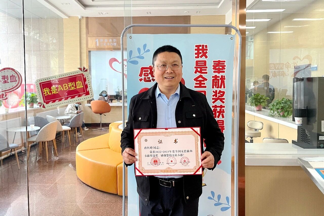 作为一名经常与医院打交道的人,孙红峰也了解到近几年血液供应压力较大这个现状,他说:“临床用血从来都不是小事,每一袋血背后都可能是一个家庭的希望。”他希望通过自己的身体力行,让更多人了解献血的意义,加入到无偿献血的队伍中来。
