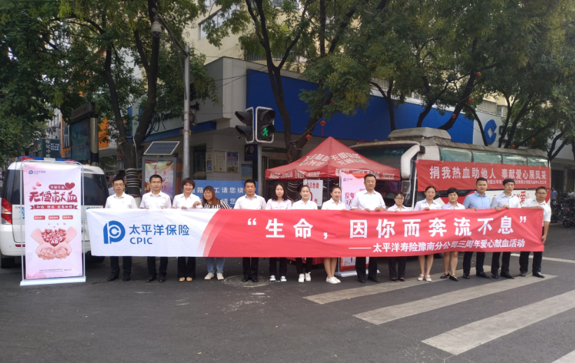 近期,我市血液库存连续一个月出现部分血型偏低,太平洋寿险豫南分公司主动联系市中心血站,于公司三周年庆祝之际,号召全体职工参加无偿献血。9月3日上午,太平洋寿险豫南分公司员工们在总经理张嵩的带领下前往解放路流动献血点开展以“生命,因你而奔流不息”为主题的无偿献血活动。公司总经理做表率,现场捐献了400毫升血液。