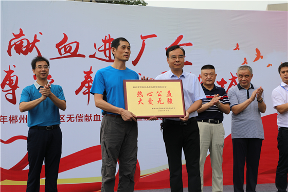 (郴州市卫生健康委副主任杨木林授予高新区管委会“热心公益 大爱无疆”称号)