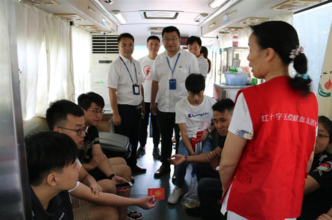活动通知9点开始,很多同志提前来到现场参加献血,8点钟就已经排起了长队。集团运控中心党支部书记陈文圣,来到现场看望问候献血者,陈书记说:无偿献血是精神文明创建的重要内容,此次活动,公司领导十分重视。结合不忘初心主题教育,培养干部职工勇于担当社会责任和乐于奉献精神,干部职工也非常积极参与,无偿献血守初心,造福人民担使命!
