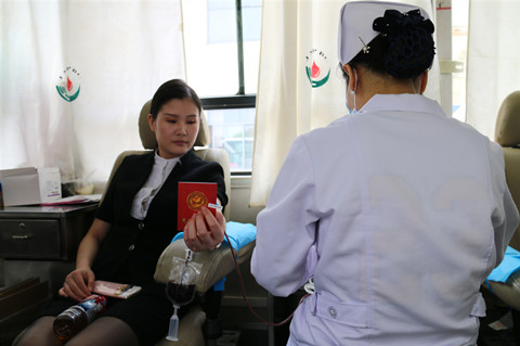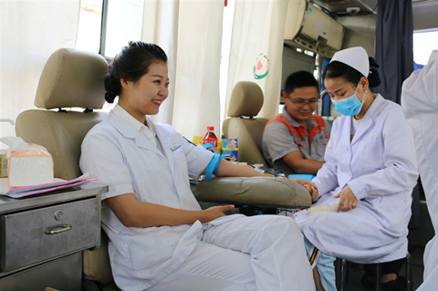 其中甘卉第三次参加献血,付忠第九次参加献血