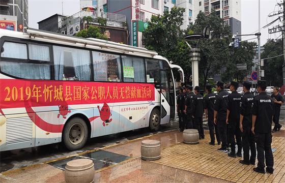 截至2019年8月31日,共有忻城县委网信办、忻城县林业局、忻城县市场监督管理局、忻城县妇幼保健院、忻城县职业技术学校、忻城县土地整理中心、忻城县纪委、忻城县公安局防暴大队、武警忻城中队、新圩乡、红渡镇、马泗乡、古蓬镇等13个单位组织参与了2019年国家公职人员无偿献血月活动,共有100名公职人员成功献血,总献血量达 35500毫升,为缓解近期我市医疗临床用血紧张状况做出了奉献,拯救了临床用血患者生命。