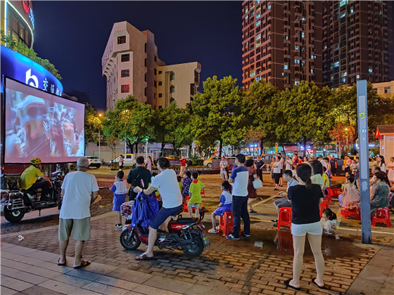 通讯员(李智宏)为丰富居民精神生活,提高文化品位,9月11日晚,郴州龙腾广场献血屋外再次开展公益电影进社区活动,放映的电影《中国蓝盔》吸引了不少散步市民驻足观看。