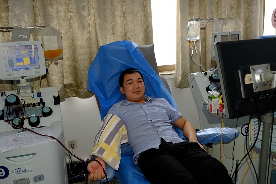 2008年4月初,他刚满18周岁不久,就第一次来到中心血站捐献了全血200毫升。他回忆:“我第一次献血就是在你们中心血站,在这里我看到好多人在献机采血小板,当时自己也是一知半解的,为什么我献的血是红色的,而他们献的血是黄色的,有点不一样。”后来经过工作人员的详细解释,让他明白了原来献血还分全血和成分血(血小板),而且各有不同的用处,这是他第一次接触到机采血小板。