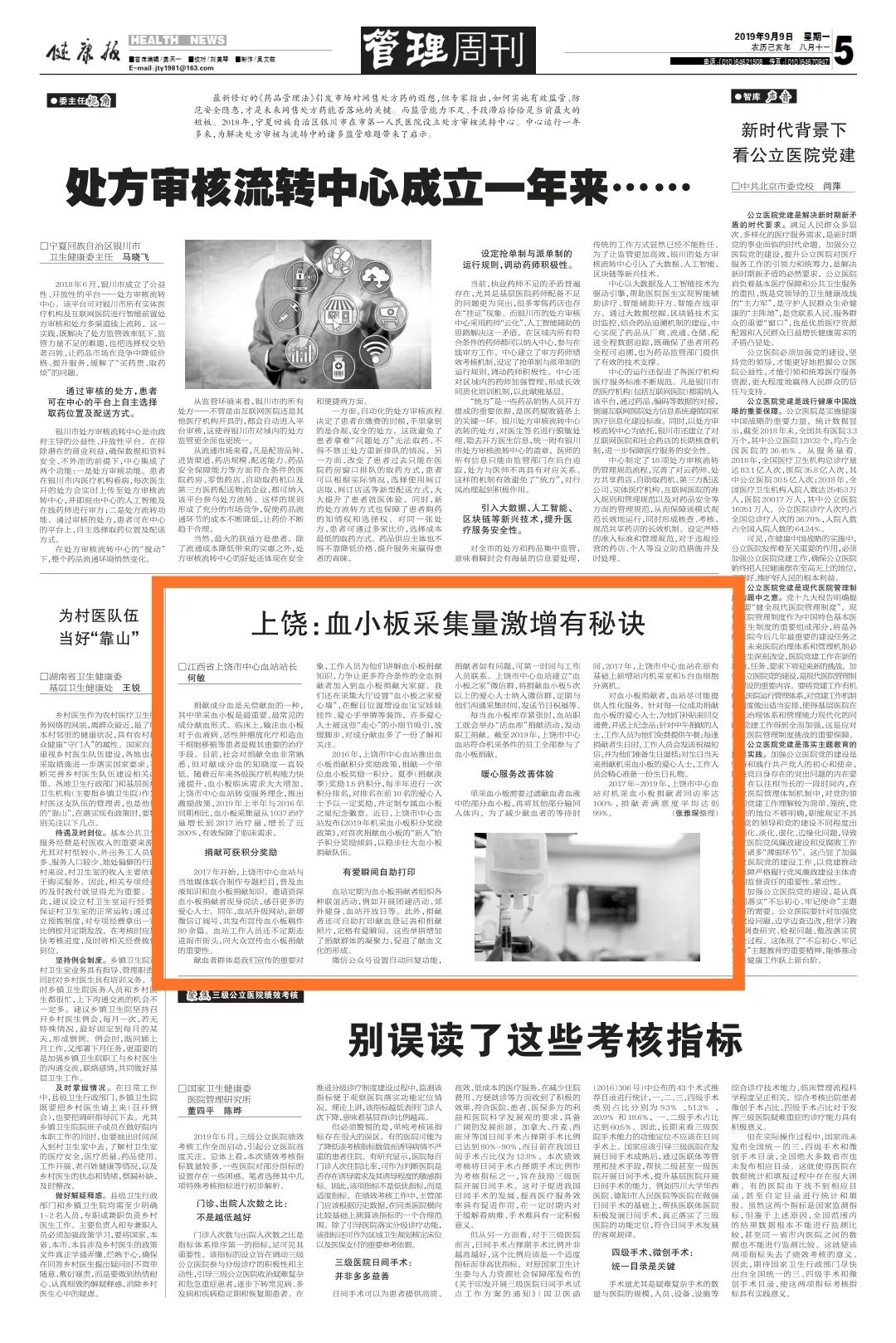 这样一家颇具权威性和行业影响力的报纸为何较大篇幅关注并报道上饶血站,让我们通过报道内容来寻找答案。