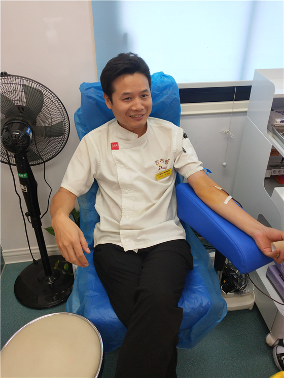 郴州吉布鲁餐厅的厨师长黎建福在参加工作前就已经是一位固定献血者了,只要有时间或者临床病患有需要,他都会第一时间前去献血。“既然献血没有什么坏处,又何乐而不为呢?”关于献血,他总是这么想,“一个人的影响力可能有限,但大家一起去做就会产生很大的力量。”因此,在他的亲身示范下,近几年不少员工都勇敢地加入无偿献血队伍,店长朱兰芝也在今年克服了晕血,带头参加无偿献血。