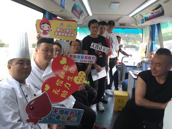 日前,天津市香格里拉大酒店门前人头攒动,暖流涌动,从总经理到工作人员,大家都热情高涨的围在血液中心的采血车前,等待献血。通过体检后,总经理Jason Stinson率先走上采血车挽袖献血,最终22人体检合格,献血5000毫升。