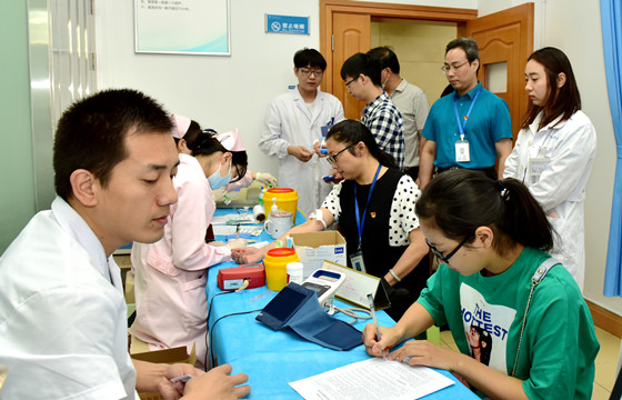 9月24日上午8:30,我中心携手合肥市第四人民医院开展了无偿献血公益活动。秋意渐凉,白大褂的整洁带来一丝肃然,而医生和护士亲切温柔的微笑缓解着医院里压抑的氛围,令人释然许多。等候抽血化验的志愿者“占据”了留观室,队伍从屋里排到屋外,秩序井然。