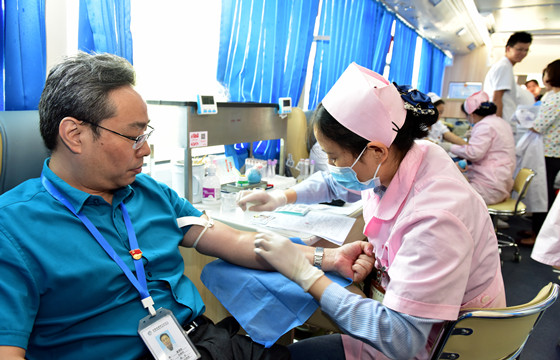 四院自成立以来也一直坚持着为无偿献血贡献自己的力量。来自审计办的副主任孙林和科教科科长夏清荣分别从1998和1996年就开始参与无偿献血的活动。孙林共献血14次,记忆最深的是2008年,汶川地震的噩耗传来,举国哀痛。孙林路过花园街,看见了无偿献血车,自发的前去献血。“我想为灾区做些事情,当时看见了,想也没想就上去了。”身体状况可以的情况下,她都会力所能及献出自己的爱心。“涓涓细流也会有汇聚成大海的一天,我一个人的力量可能不算什么,但我参与了,融入了大家,就可以拧成一股大的力量。”对48岁的夏清荣来说,印象最深刻的是97年,分院来了一位烧伤科的患者,急需用血。那个时候无偿献血还不能做到大范围的宣传,得知患者与他同血型,他便去了。至今为止,共献血11次。“无偿献血从来都是不需要喊口号的行动,作为医务人员,我们有这份责任感,我们有救人的使命,在身体条件允许的情况下,参与无偿献血是我们的担当。”即便年岁渐长,可他依然昂扬,依然坚定。