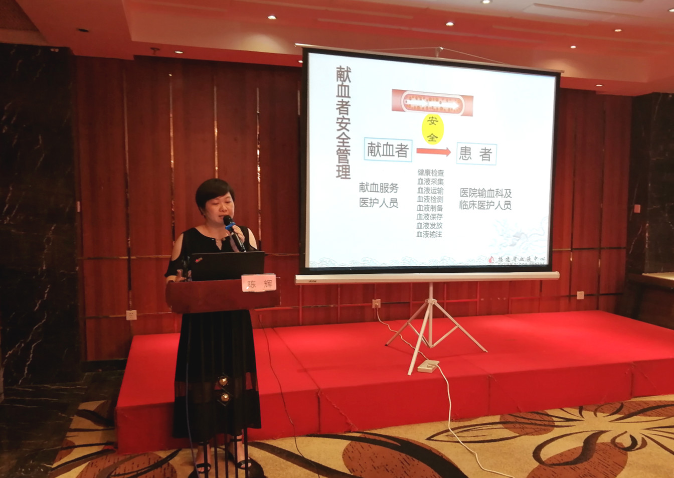 福建省输血协会献血服务专业委员会主任委员、福建省血液中心副主任曾嘉在培训班上致辞,对参训人员的到来表示欢迎,并希望能学以致用,共同促进全省献血服务工作的开展。