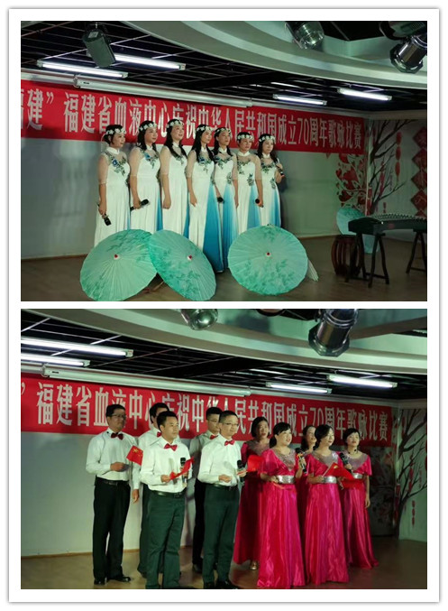 为庆祝中华人民共和国成立70周年,歌颂党的丰功伟绩,弘扬爱国主义精神,9月24日下午,福建省血液中心举办“礼赞新中国·奋进新福建”庆祝中华人民共和国成立70周年歌咏比赛。来自中心各科室的8支代表队参加了比赛,为观众呈现了一场精彩的视听盛宴。