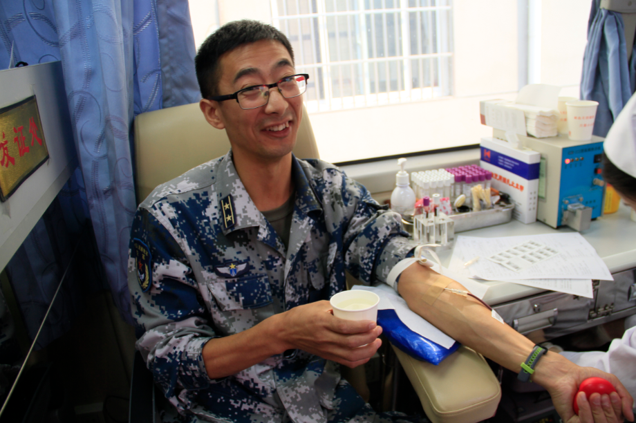 当天上午,献血车开进驻军基地,在部队领导的号召下,官兵们在献血车前排队填写献血登记表,进行血压测量,做献血前血液初筛检测工作。整个活动现场井然有序,营连干部和士官党员带头献血作表率,年轻战士们积极踊跃,一个个脸庞都显得格外认真。“能够以无偿献血的实际行动来诠释军人本色,我觉得意义不一样,能在祖国华诞来临之际参加无偿献血,为人民服务,我深感骄傲和自豪”一名军官说到。