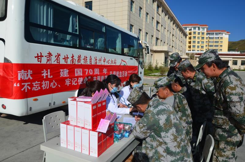 9月27日,在建国70周年来临之际,甘肃省甘南州军分区民兵应急营与甘南州中心血站联合开展“不忘初心、牢记使命”主题教育的无偿献血活动,以此来向祖国70华诞献礼。63名民兵用热血和真情演绎了一段感人至深的“爱与奉献”,为社会公益事业奉献力量。