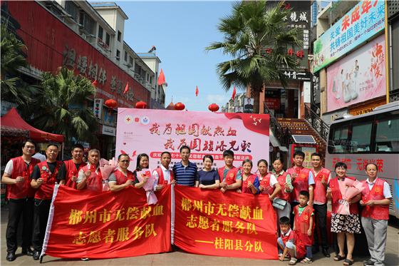 通讯员(李智宏)为热烈庆祝中华人民共和国成立70周年,树立社会文明新风尚,发扬“人道、博爱、奉献”的红十字精神,9月28日,郴州市红十字会、郴州市中心血站联合市蓝天救援队、市福建商会青创会等民间爱心组织,以喜迎国庆为契机开展“我为祖国献热血 我为国旗添光彩 庆祝祖国七十华诞无偿献血暨造血干细胞捐献活动”,在全市上下营造无偿献血光荣的浓郁氛围。