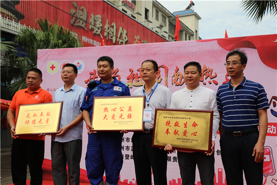 郴州市红十字会副会长张权、郴州市中心血站站长李孟祥出席此次活动,并为助推无偿献血工作的郴州市蓝天救援队、市福建商会青创会、湖南今兴华教育咨询有限公司授牌。活动现场还表彰了杨智、黄栋才、车向葵、肖小兵、龙宇波、钟夏文等一批先进献血者代表,热烈的气氛吸引了不少市民驻足观看。