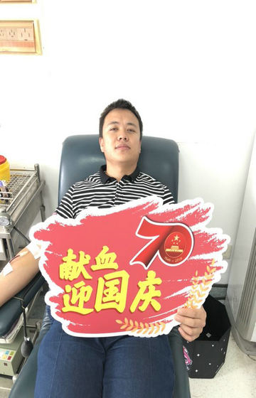10月2日又到一年一度的国庆佳节,今年是国庆70周年,全中国人民都在热烈庆祝这个喜庆的日子。上海市血液中心也不例外,收到了来自四海八方无偿献血者的特殊礼物。献血者徐刚距上次献血间隔期已满,特地趁着假期从松江赶来中心本部捐献热血400毫升,给祖国母亲送上祝福和特殊的礼物。
