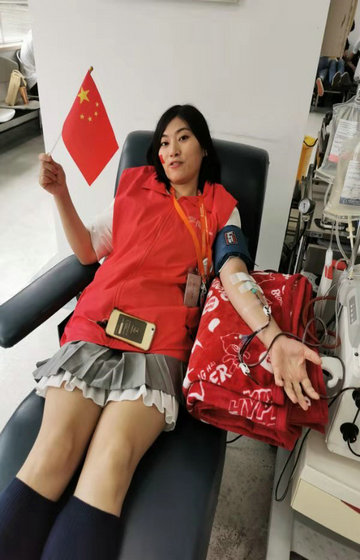 国庆当天,志愿者沈培培来到上海市血液中心,体检通过后成功捐献单采2人份,作为固定献血者,这已经是她第48次献血了。这次国庆献礼只是她数年坚持的一个缩影,她表示献血这件有意义的事情,她会坚持做下去。