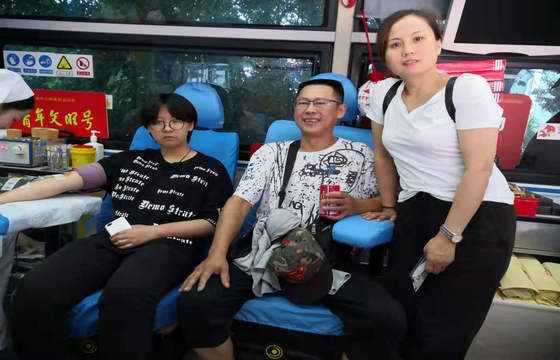 10月2日,朱峥一家三口特地赶来献血。朱峥之前有过献血的想法,但体检没有合格,这次带着年满18岁的女儿朱馨怡一起来献血。体检合格后,父女俩分别捐献了400毫升和200毫升热血。朱太太也很想献血,但由于身体原因未能捐献成功。