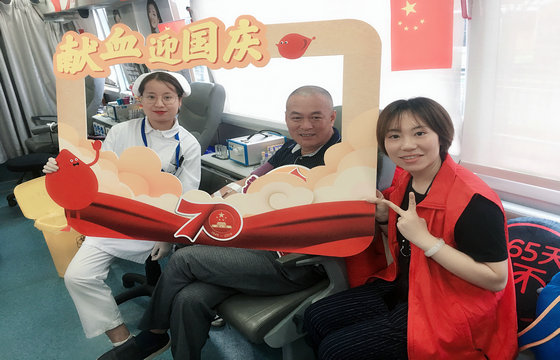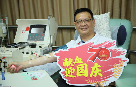 10月1日,上海市血液中心党委书记、上海市血液管理办公室主任邹峥嵘来到血液中心捋袖捐献血小板,庆祝中华人民共和国成立70周年。邹峥嵘表示,上海每天都有患者需要大量的全血或血小板来拯救生命,他要身体力行,以实际行动来参与无偿献血。