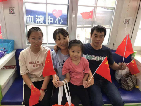 全国无偿献血金奖获得者周飞,趁着国庆假期带全家到运河景区游玩,再次走进献血屋,捐献了400毫升热血。