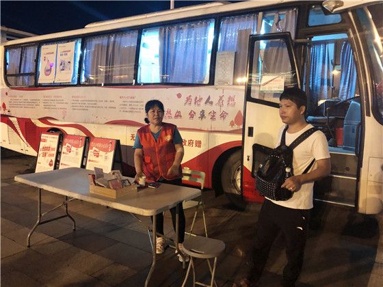 9月的天气,炎热还未褪去。夏日里南禅寺爱心献血车为了采集更多的血液,延长开放时间至晚上20点,以方便群众献血。当日下午17点,爱心献血车的工作人员还在忙碌着,一位熟悉的老大姐踏上献血车,她就是张妹芳,她是今天晚上的献血服务志愿者。张妹芳快速地穿好红马甲,准备好献血的宣传物品,来到车下做起了献血宣传招募服务。