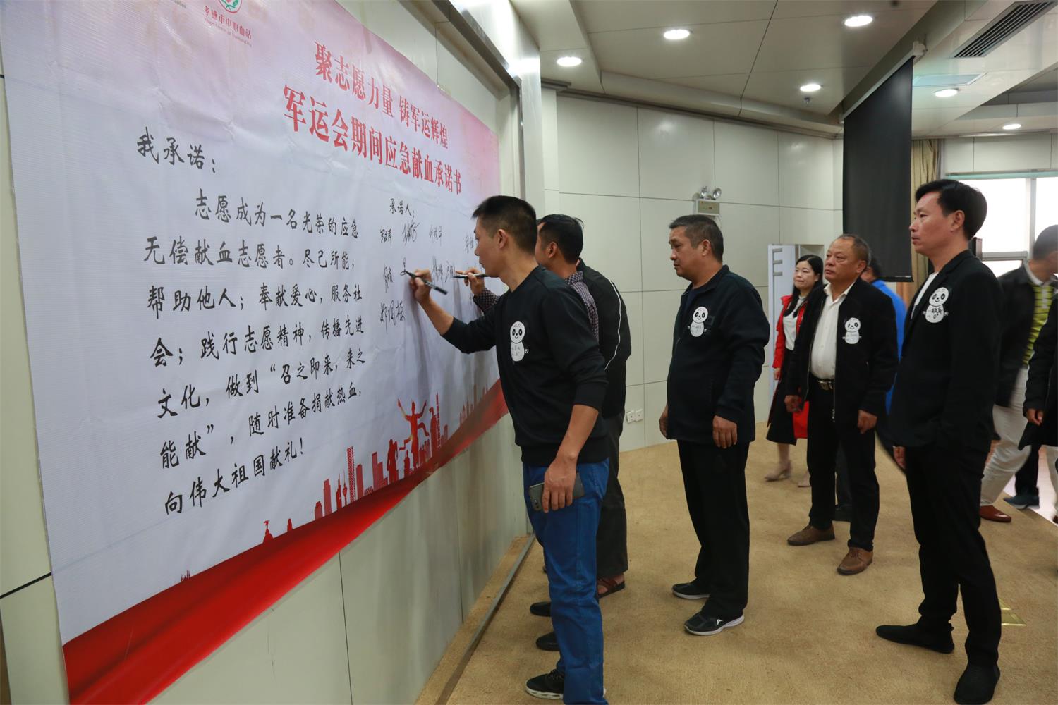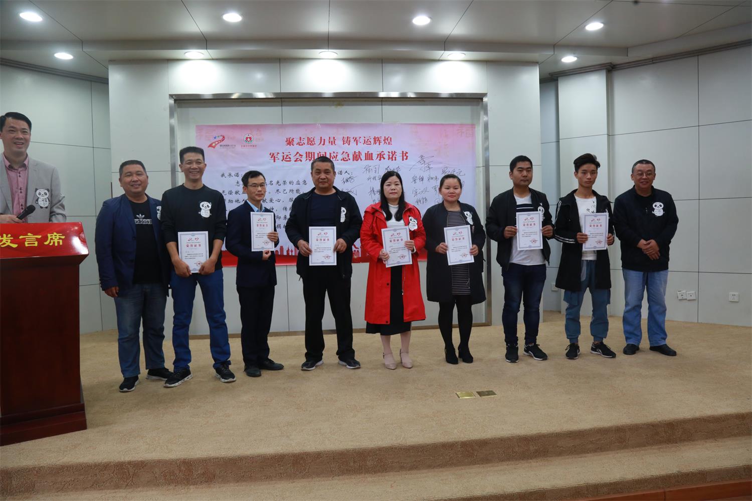 10月13日,孝感市稀有血型献血者和部分志愿者代表齐聚该市中心血站,参加迎军运血液保障暨稀有血型志愿者联谊会,大家齐声颂读应急献血承诺书,并在承诺书上纷纷签名,愿以一腔热血确保世界军运会期间所需血液保障。