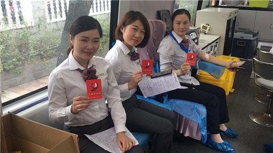 (活动现场大家踊跃献血)