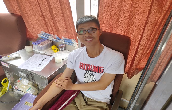 在车内献血时,每位同学的脸上都洋溢着自豪的笑容。一位同学说到:“成年了就要做点成年人该做的事,要么服务社会,要么保卫国家。我献一次血,也算为社会、为国家做了点什么了!”