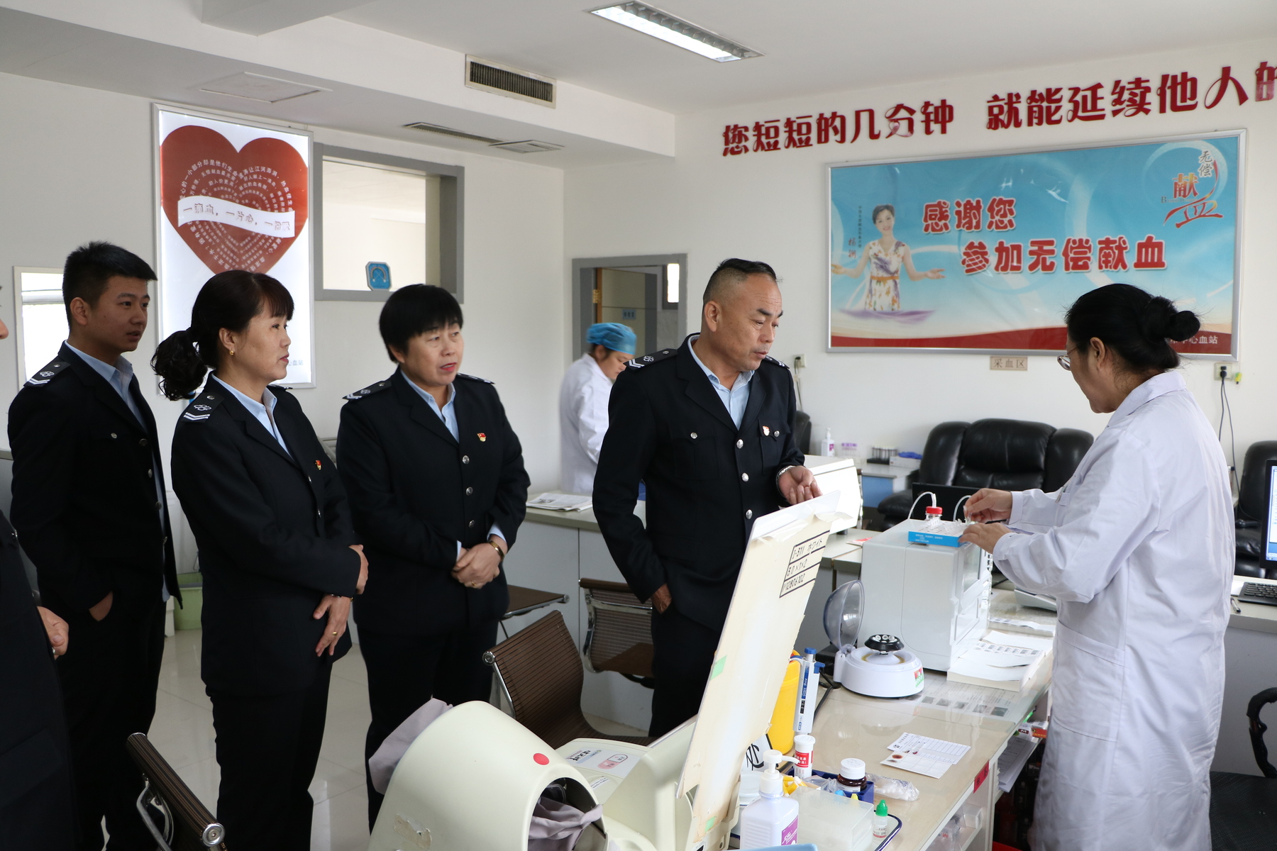 上午9时,在血站献血室内,公司副经理任灵芝既是本次无偿献血的组织者又是献血者,她带头填表、查体、献血,其他职工也争先恐后,撸袖献血。任灵芝说:“今天我们组织职工参加献血活动,就是进一步弘扬社会主义核心价值观,展现公司友爱互助,乐于奉献的精神风貌”。大家纷纷表示,无偿献血是每个公民应尽的义务,作为一名公交人,要让爱心象公交一样在公路上延伸,用自己的鲜血点燃更多人生命的希望。”