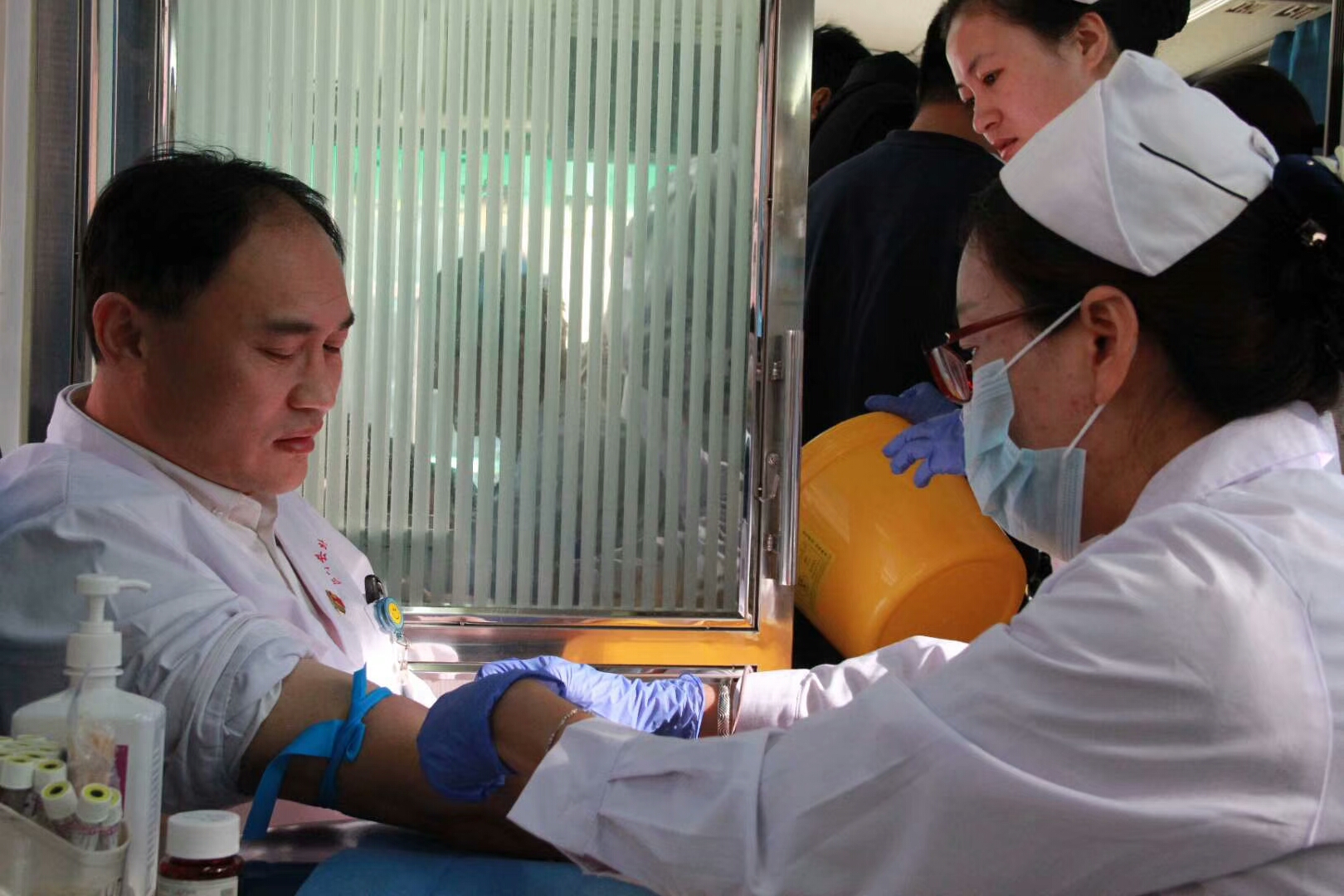10月15日上午,为缓解临床用血紧张局面,巨野县北城医院组织医护人员、干部职工开展集体无偿献血活动。