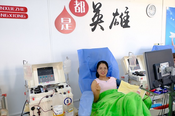 今天和大家分享的这位“百次以上献血者”故事的主人公——陈丽君——是位女性献血者,她从2002年12月开始参加无偿献血,2019年10月累计献血达到100次 21800毫升,其中捐献机采血小板89次 17800毫升,全血11次 4000毫升。