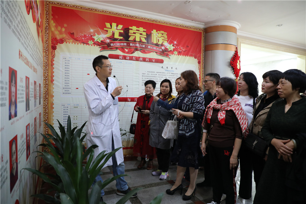 讲解员带队员们参观无偿献血者光荣榜