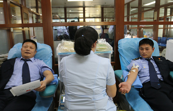 在市中心血站工作人员的引导下,干部职工按规定认真填写申请表、测量血压、排队献血,每个环节都进行得井然有序。身体检查合格的志愿者们挽起衣袖,将自己健康的血液无私奉献给需要帮助的人。