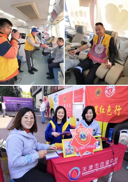 在活动现场,中国狮子联会天津分会海天服务队、海河服务队的志愿队员们热情洋溢地协助献血工作,为献血者抓拍献血的爱心一刻,并现场制作和赠送相框,作为一份特别的留念送给献血者。