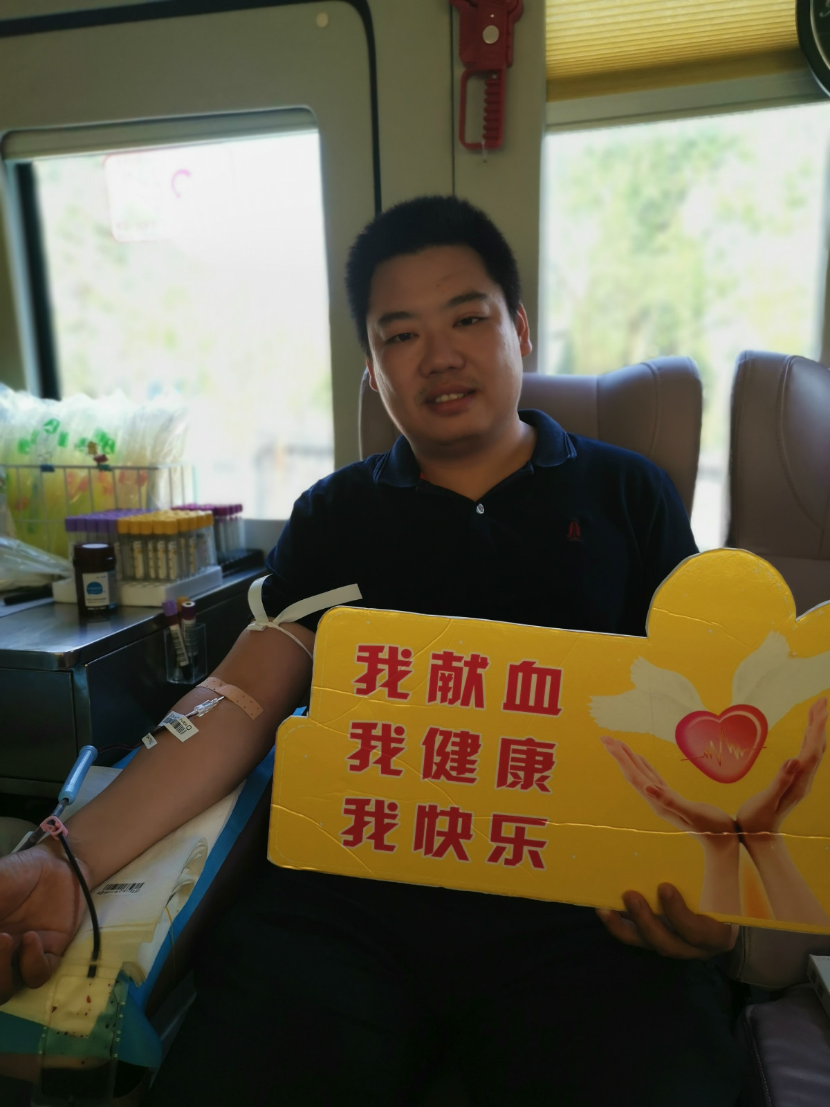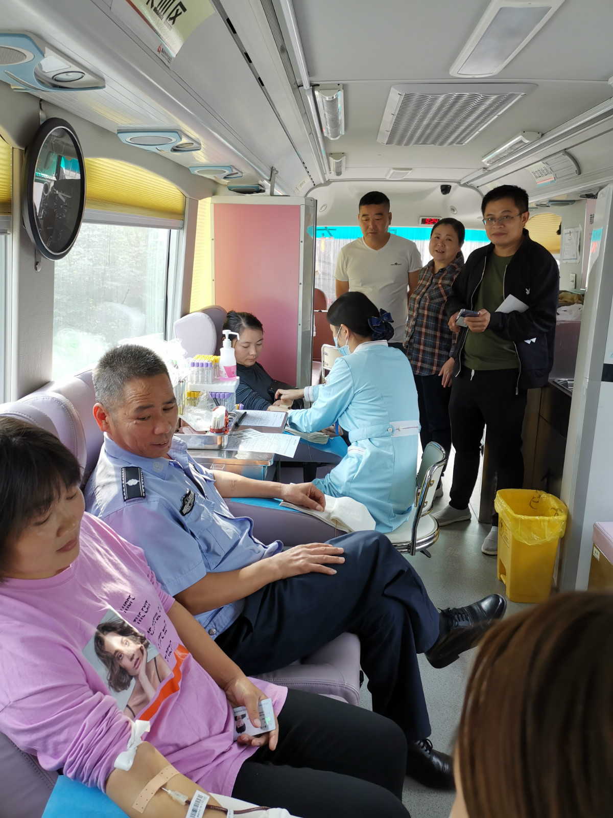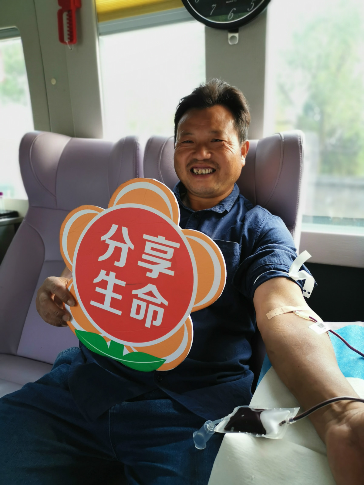 陈师傅是第一个登上献血车的,今天是第二次献血。
