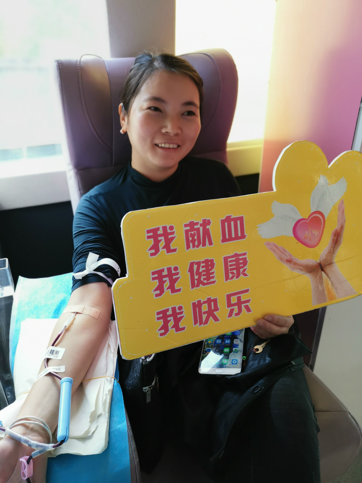 这位年轻妈妈之前好几次因为各种原因未能成功献血,今天终于如愿。