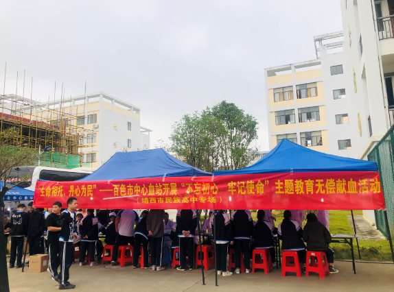 靖西市民族高中献血活动是百色市中心血开展“不忘初心,牢记使命”主题教育无偿献血第九场专场活动,血站全体职工秉着“生命相托,丹心为民”的初心,认真做好全市采供血工作,保障临床用血的安全、有效、及时。