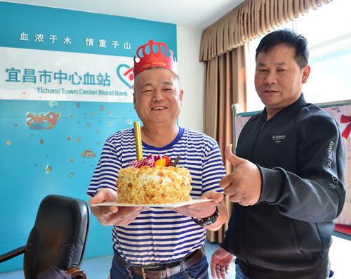 据了解,全市获得全国无偿献血志愿服务终身荣誉奖的仅有5人,老罗是其中之一。29日是他60岁生日,根据国家相关献血规定,献血年龄范围是在18~55周岁之间,曾献过血且既往无献血反应的可延长至60周岁。也就是说,这是老罗的最后一次献血。为庆祝自己的60大寿,当天上午,老罗还专门带来一个生日蛋糕与工作人员和无偿献血志愿服务者分享这份喜悦。