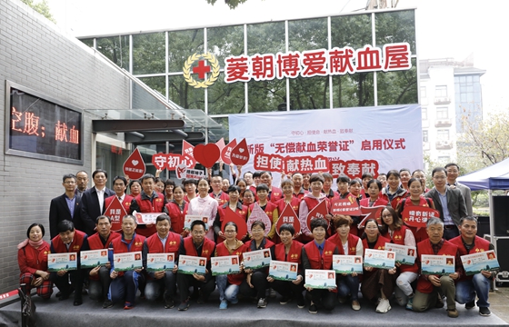 根据《省卫生健康委关于启用新版<浙江省无偿献血荣誉证>的通知》的要求,为了进一步加强《浙江省无偿献血荣誉证》(以下简称《荣誉证》)的使用,提高证件质量、防伪性能和使用便捷性,我市以绍兴市民卡副卡为载体制作新版《荣誉证》,10月27日,新版《荣誉证》启用仪式在菱朝博爱献血屋举行。市卫生健康委员会医政医管处处长阮伯金,市中心血站、市社会保障市民卡服务有限公司领导,各区、县(市)采供血机构负责人,志愿者代表等50余人参与新版《荣誉证》启用仪式。