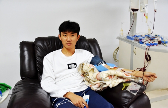 “觉得献血这件事十分有意义,我在学校QQ群里看到机采血小板的招募消息,就立马预约了,我们寝室6个人有3个都献血了,看到他们献完血很正常,和平时一样,我就觉得自己也可以献。”大一新生王志安告诉血站工作人员。