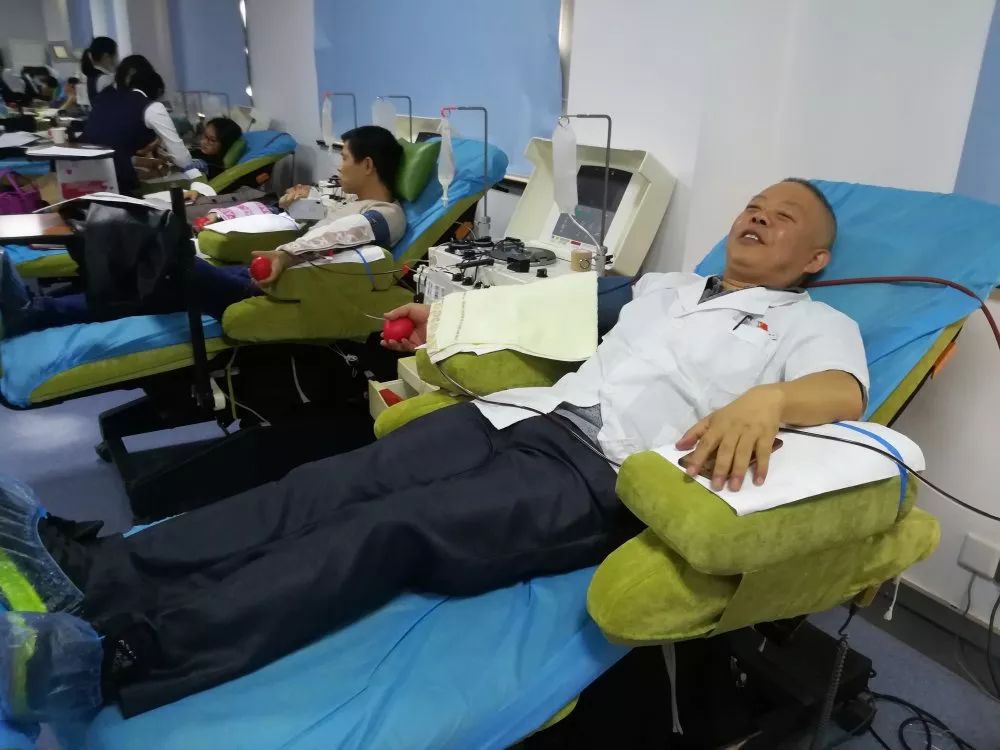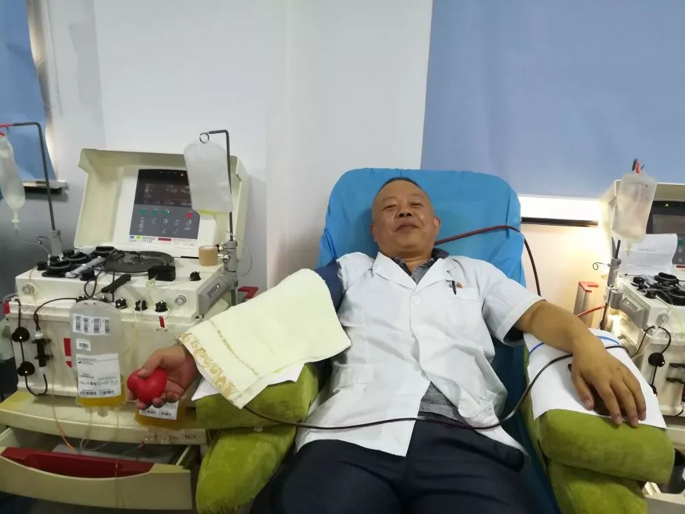 是呀,每当血源紧张的时候,奚华新主任都会伸出手奉献自己的热血,从1991年开始,至今已经献血14次,其中全血9次,血小板5次,共计献血量5000毫升。1999年后,他因为血检ALT不符合献血标准,献血中断14年时间,但后期他通过坚持锻炼身体,注意饮食,又于2013年重新加入到无偿献血的队伍中来,并在此后坚持每年献血。