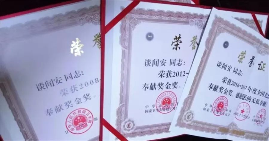 第一次尝试捐献血小板后,谈闻安同样感觉无他恙。从那之后,他便“转战”捐献血小板。至今他已坚持献血十四年,共捐献全血700ml,血小板140个治疗量,连续几届获得无偿献血奉献奖金奖。