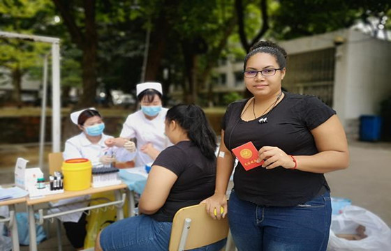 9月20日,华中师范大学留学生踊跃参与特殊血型的采集筛查。