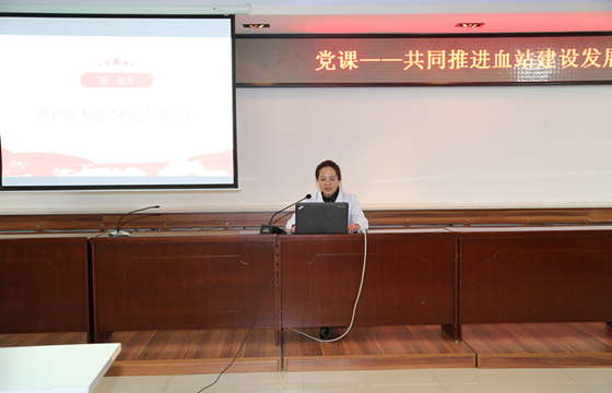 血站工会主席赵琪以《不忘初心、牢记使命,共同推进血站建设发展》为题,引导党员干部职工守初心、担使命、找差距、抓落实,从血站建设发展方面进行总体策划,鼓励血站人共同努力建设美好未来。